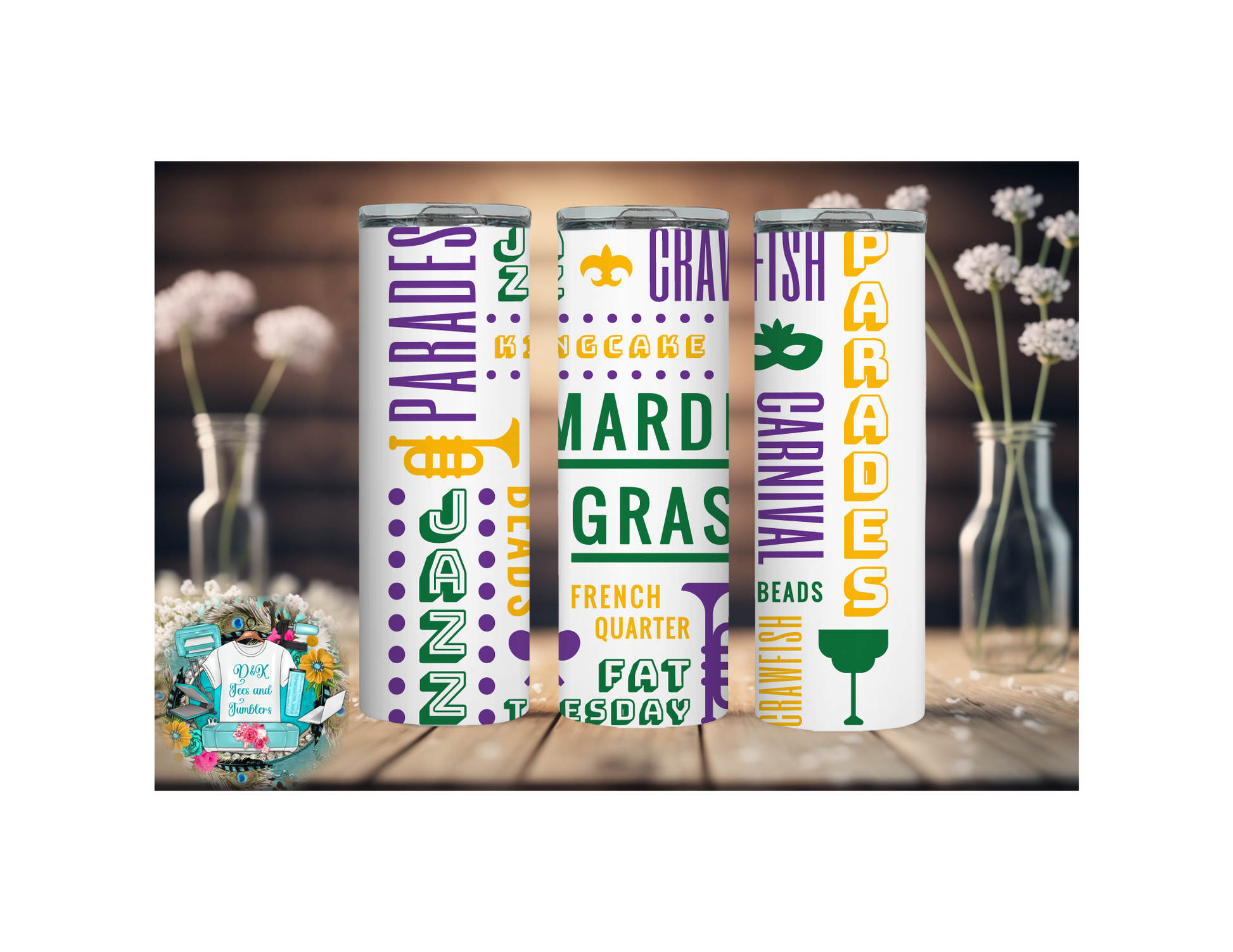 D&K vibrant Mardi Gras collection! Explore our colorful, festive shirts and matching tumblers designed by US. to elevate your celebration. No matter the weather this tumbler holds both hot and cold beverages for hours.